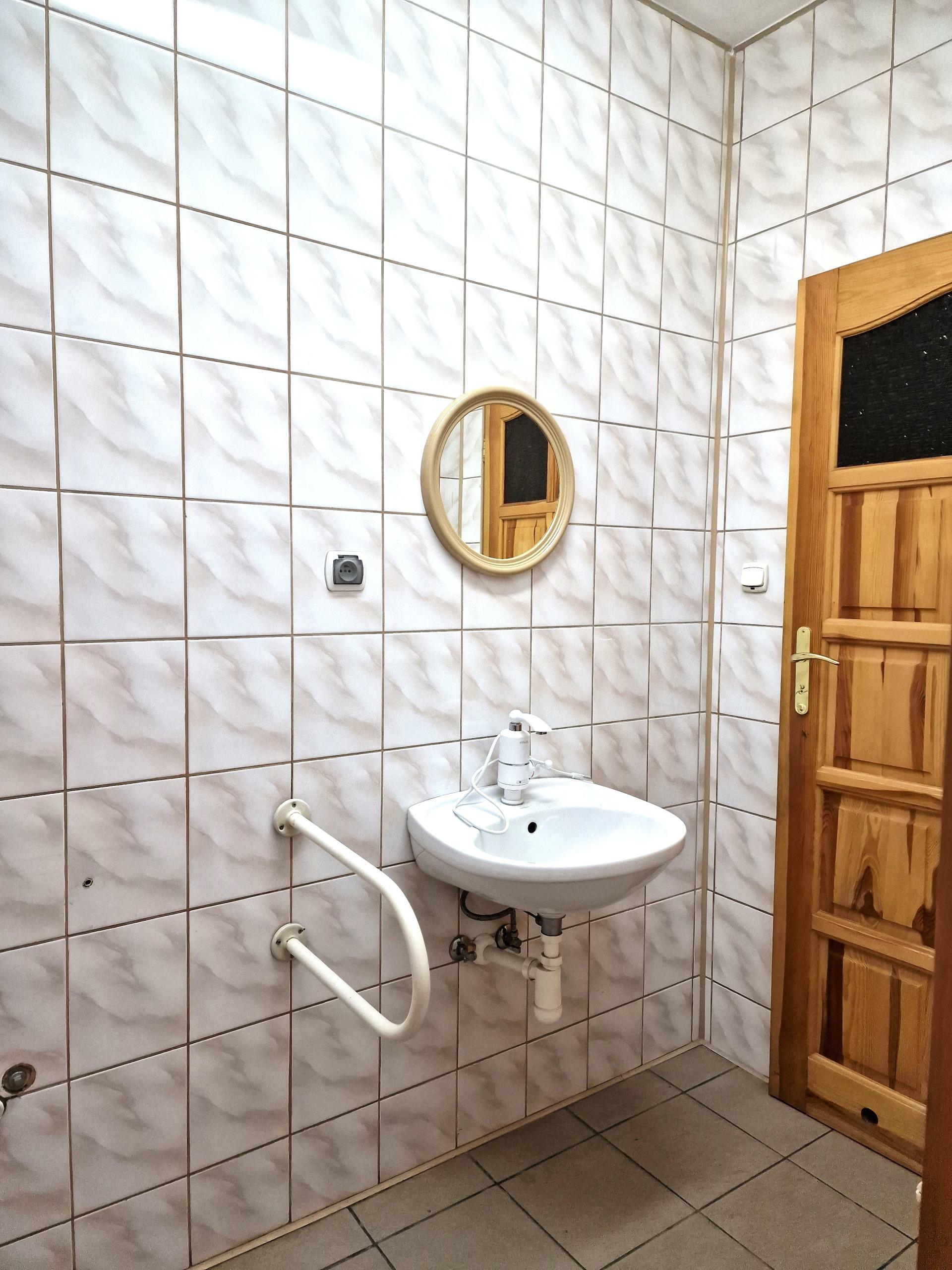 W skład lokalu wchodzą trzy oddzielne pomieszczenia, kuchnia z jadalnią oraz dwie duże łazienki z wc.