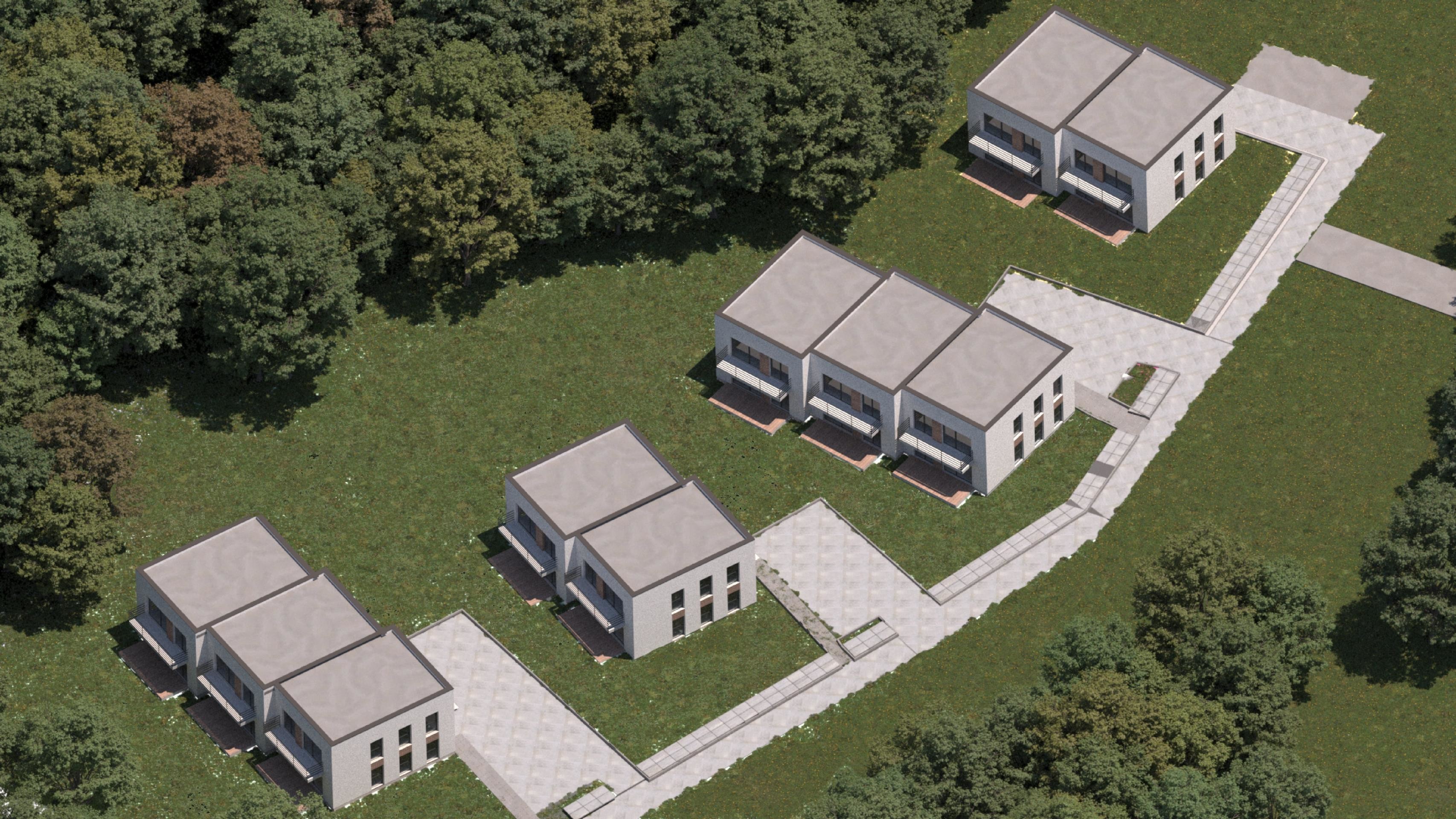 W każdym z budynków znajdują się po 2 mieszkania o powierzchni od 65 m2 do 80 m2.