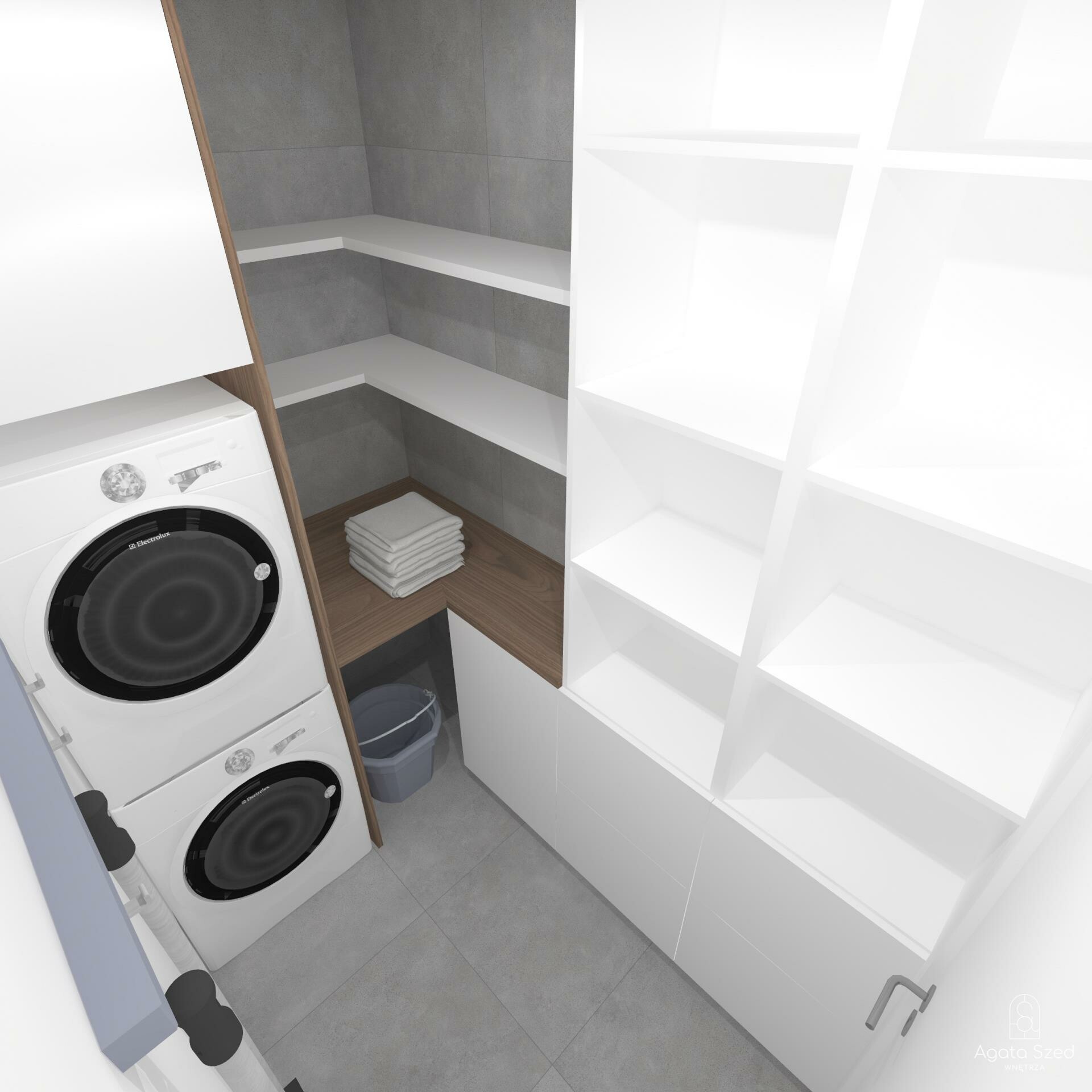 Zaletą pozostają dwie łazienki, po jednej na każdej kondygnacji oraz dodatkowe pomieszczenie na piętrze, które może pełnić funkcję pralni lub garderoby.