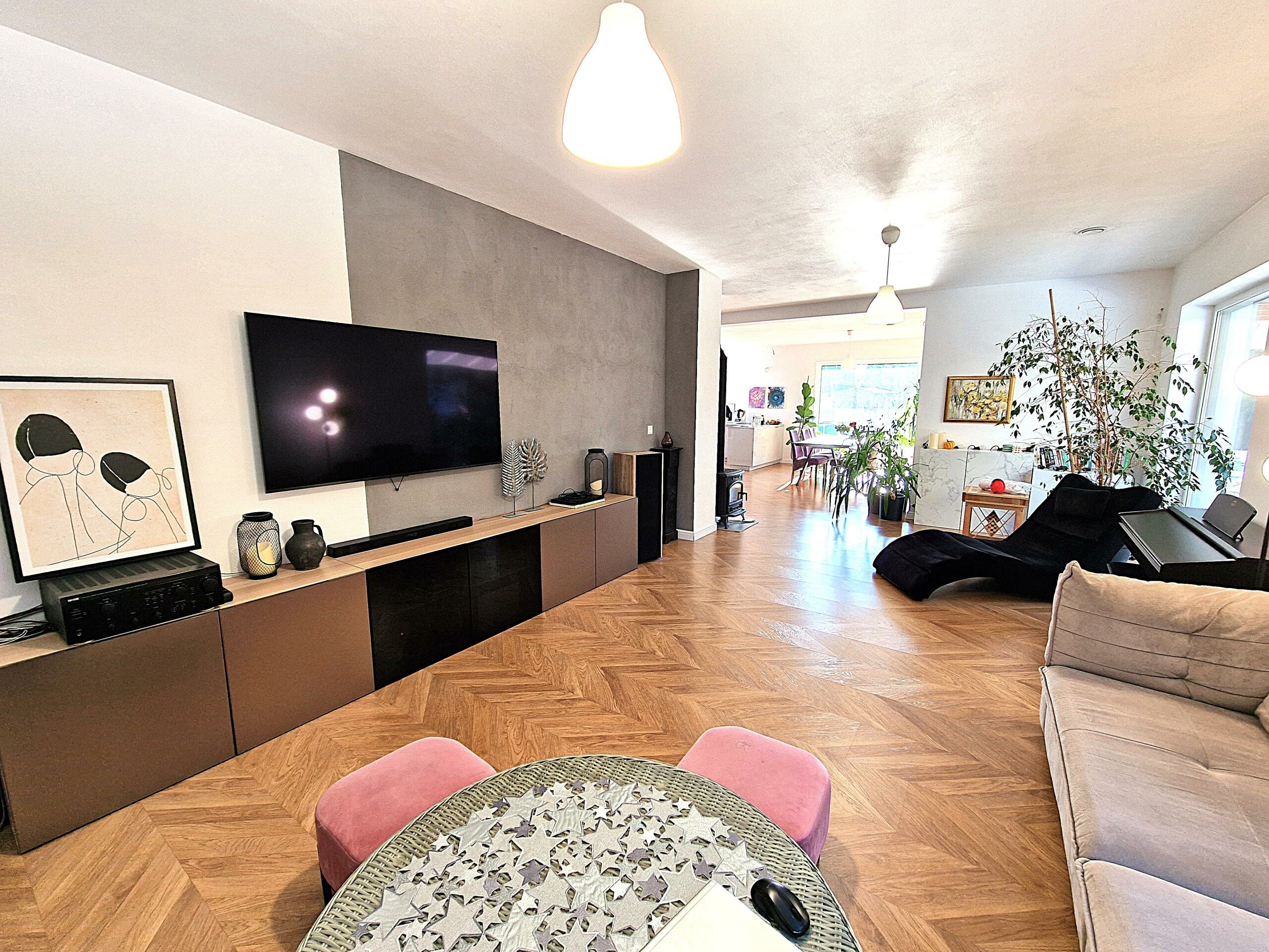 Dom został urządzony w nowoczesnym stylu.