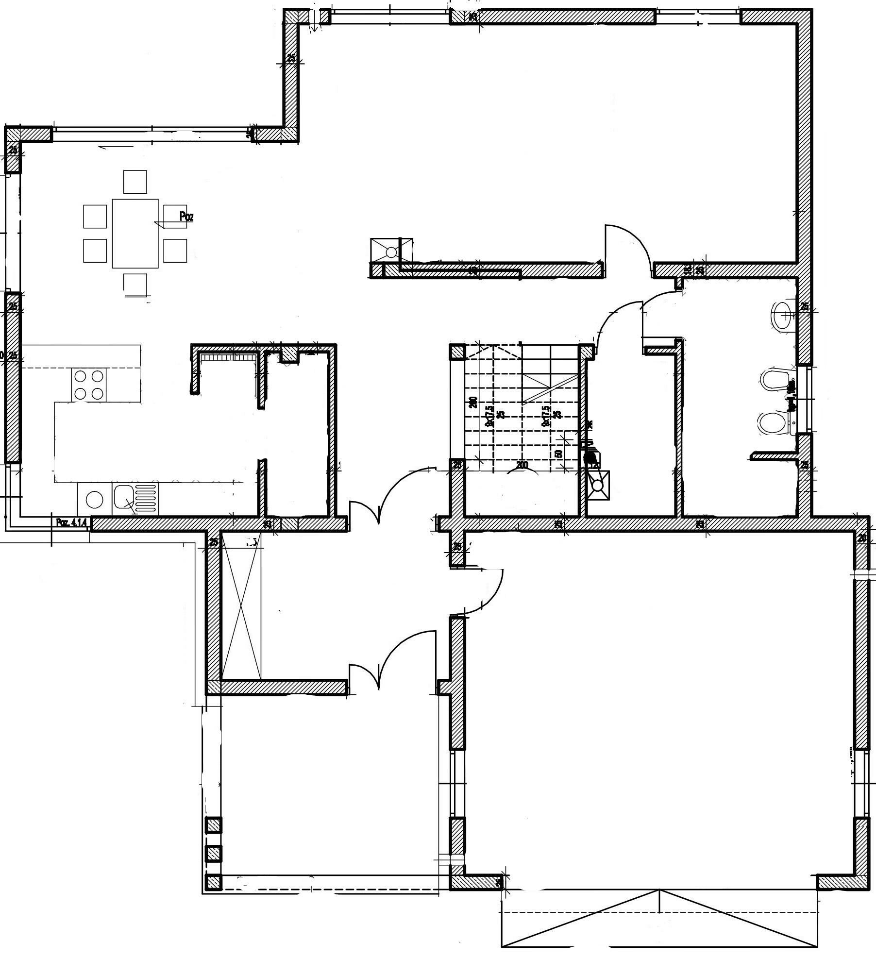 Ściany zewnętrzne zostały wykonane z pustaków ceramicznych Porotherm.